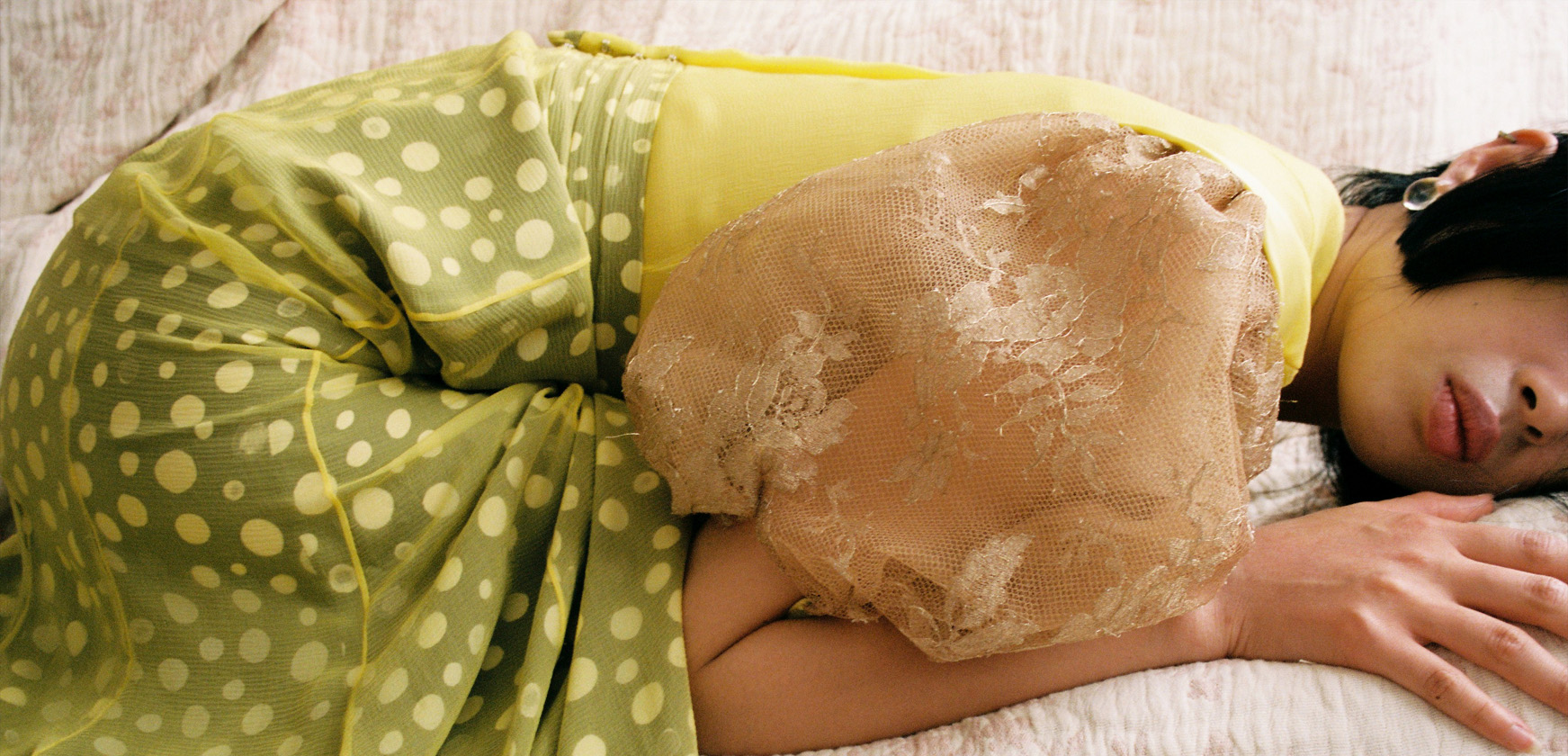 Vestido, NUNO VELEZ. Brincos e sapatos, da produção. Meias, PAUL SMITH.