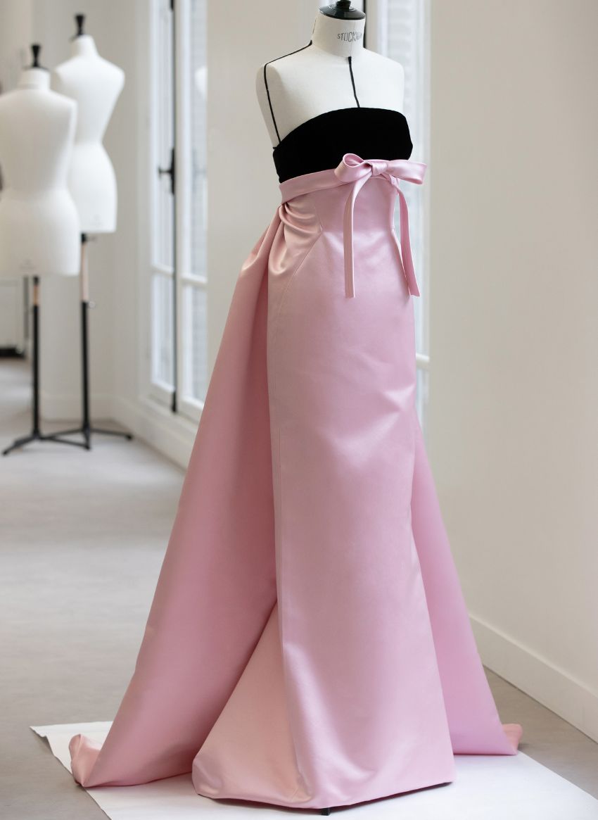 Diretamente do arquivo da maison, o look é uma representação fiel ao icónico vestido Bal à Paris, tal como originalmente desenhado pelo próprio Christian Dior. O modelo de arquivo, inicialmente revelado para a coleção primavera/verão 1956 da maison, apresentava uma silhueta de organza em cetim branco e veludo preto. Já o look usado por Madison para os Óscares 2025, surgiu numa combinação de tons ousadamente feminina, em cetim de seda dupla face rosa e um corpete em veludo preto adornado com um laço delicado.