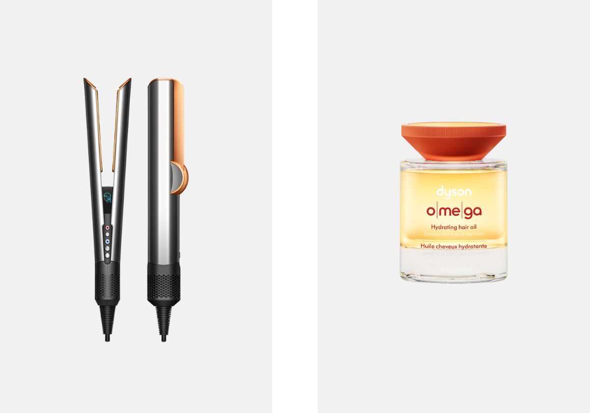 À esquerda: Alisador Airstrait, €429, Dyson. À direita: Óleo para cabelo Omega, €52, Dyson.