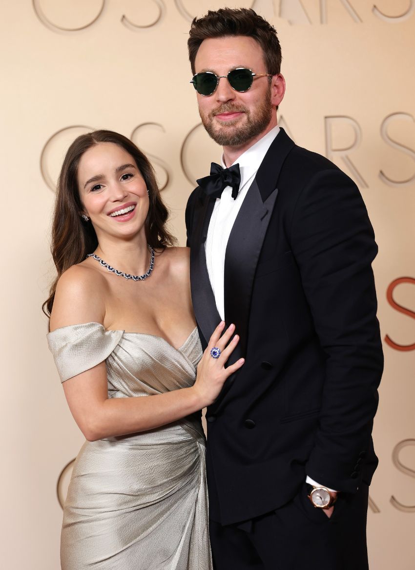 Alba Baptista em Zuhair Murad e Chris Evans em Giorgio Armani