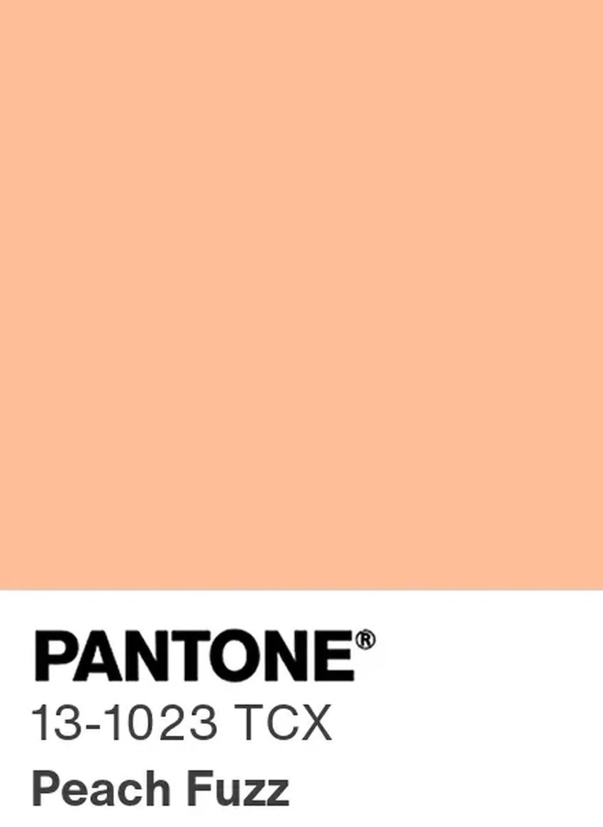Pantone 13-1023 Peach Fuzz, a referência correta da tonalidade, é um tom entre o rosa e o laranja, um cor-de-pêssego mais suave, que veicula sensações de alento, generosidade, empatia, compaixão, apelo ao toque, paz, serenidade e um espírito de bondade que enche mente, corpo e alma. Algo que parece que o mundo precisa já e não apenas para 2024.