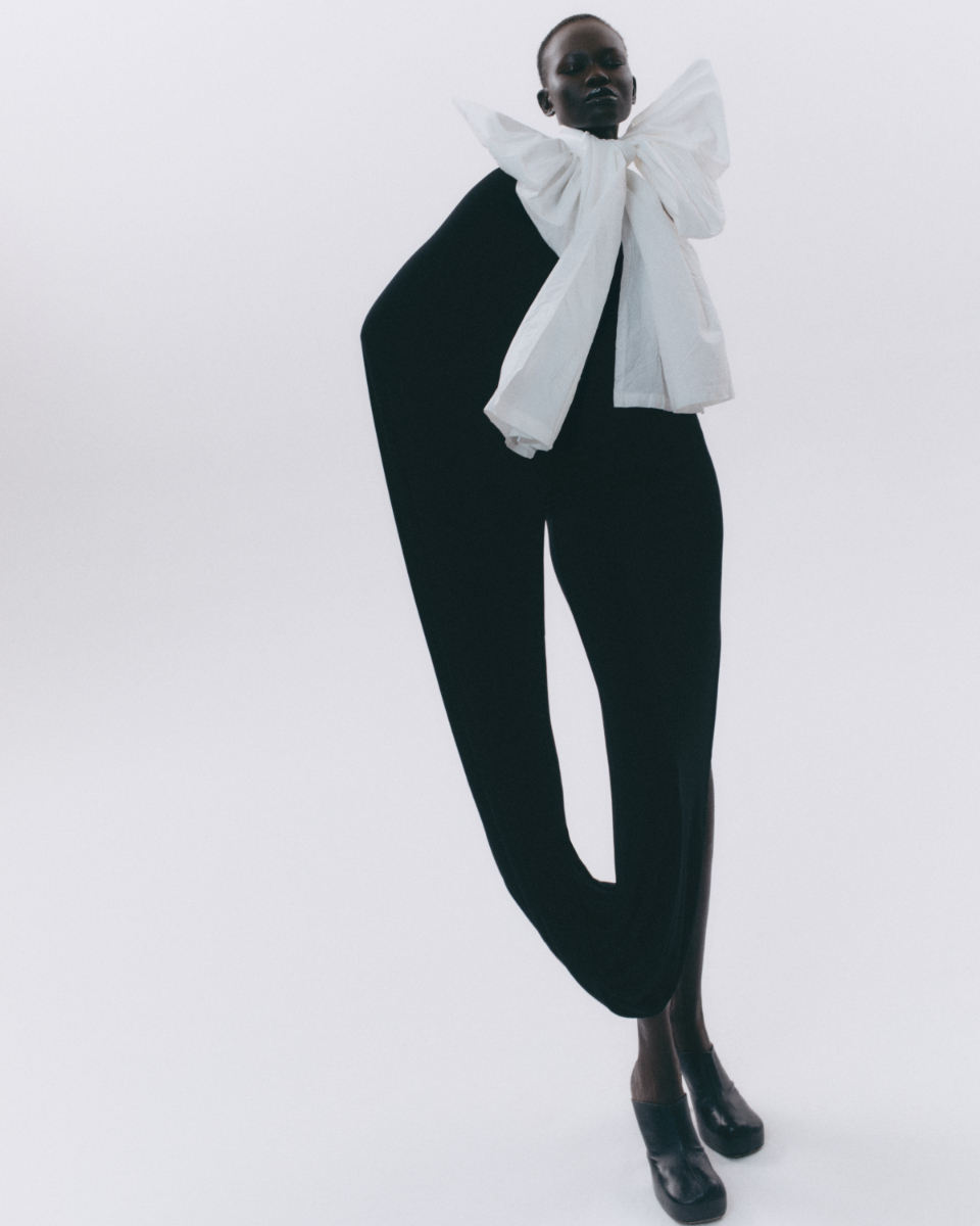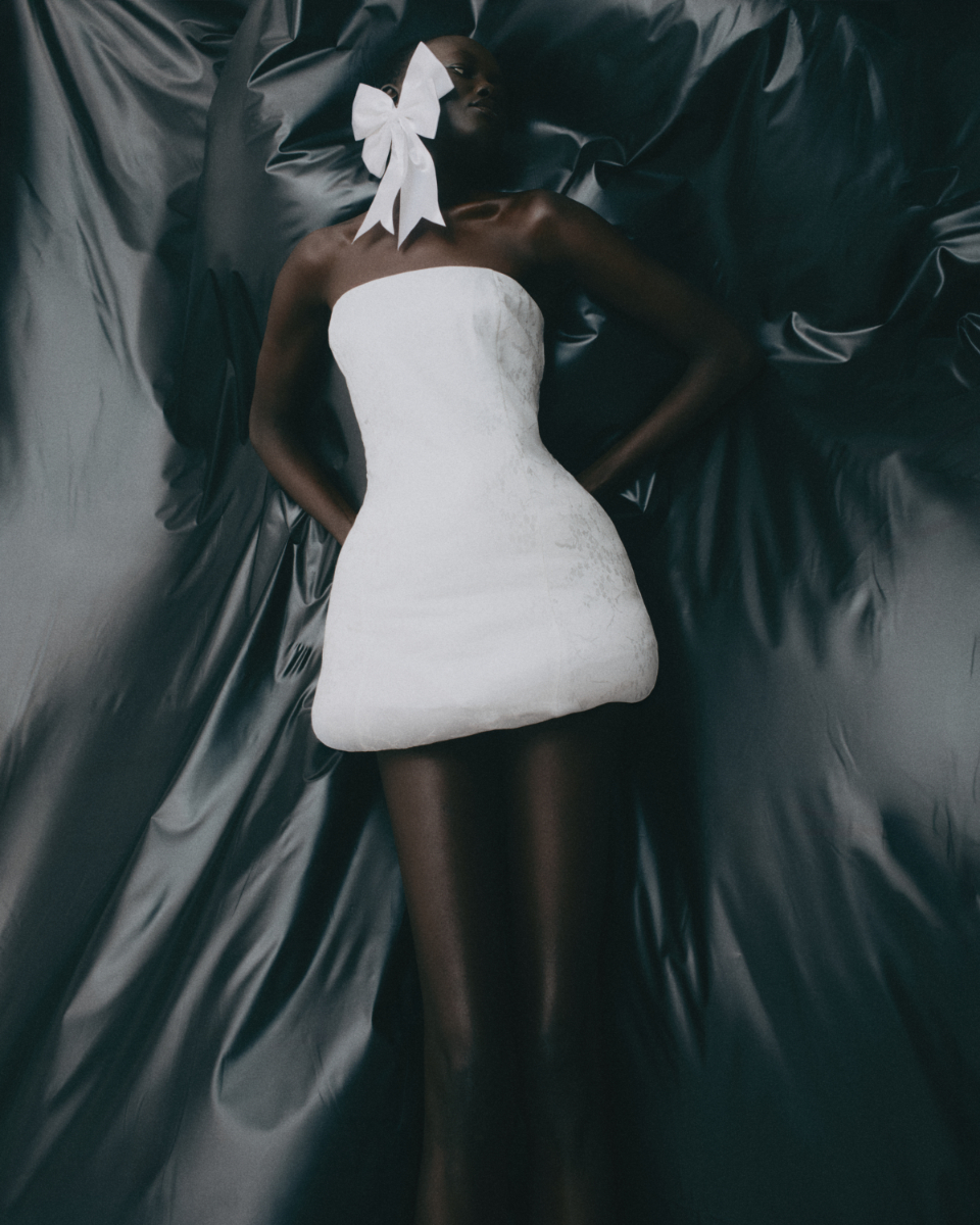 Vestido, CULT GAIA. Sapatos, BOTTEGA VENETA. Laço, MAISON MICHEL.