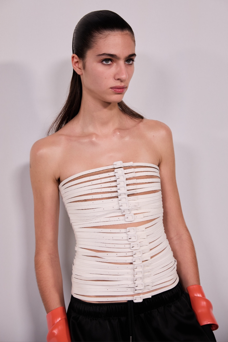 Com propostas que refletem o futurismo, a coleção de primavera/verão 2026 da Courrèges espelha a preocupação ambiental da marca. Os momentos que antecederam o desfile foram captados pela lente de Isabelle Hardy.