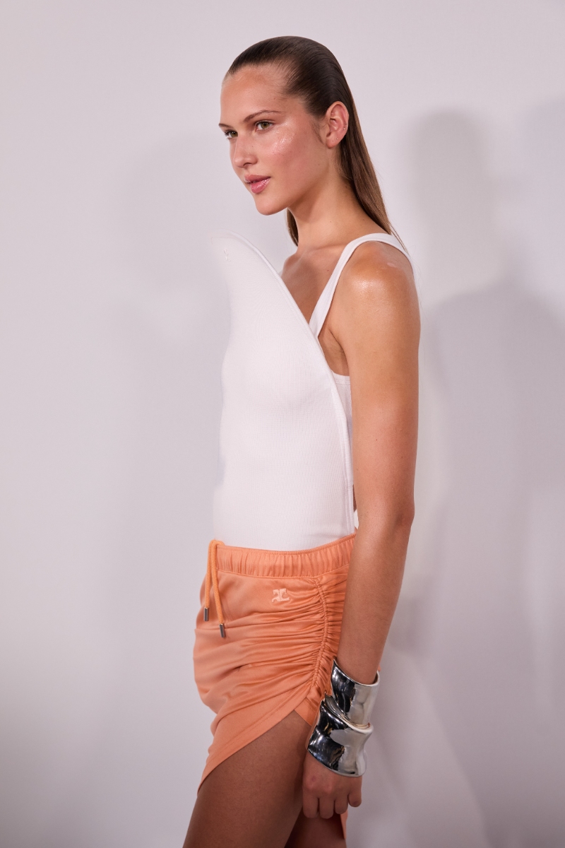 Em plena Semana de Moda de Paris, a Courrèges apresentou as suas mais recentes propostas. Sob a assinatura do designer Nicolas Di Felice, a coleção, intitulada Blinded by the Sun, conta com inspirações diretamente retiradas da sua viagem à Tailândia. Entre cortes que brincam entre o moderno e o futurista, nascem silhuetas assimétricas com recortes e drapeados. Já o destaque do desfile surge em formato de escudos solares faciais, num convite à reflexão sobre os impactos ambientais do aquecimento global.