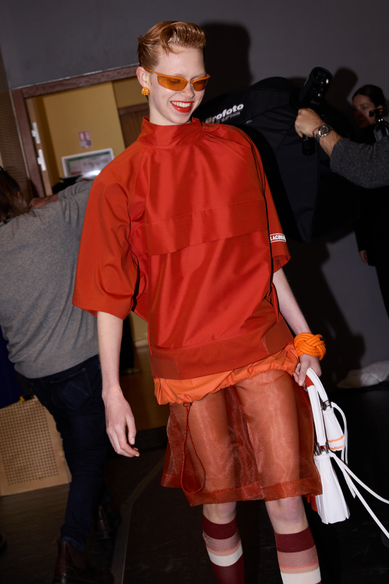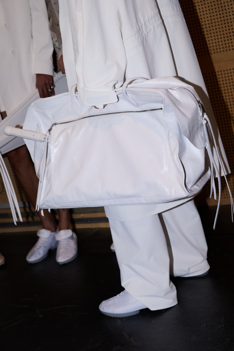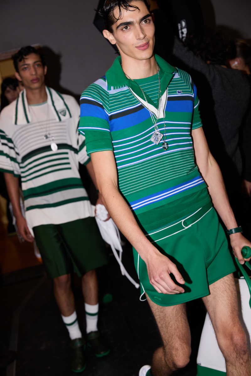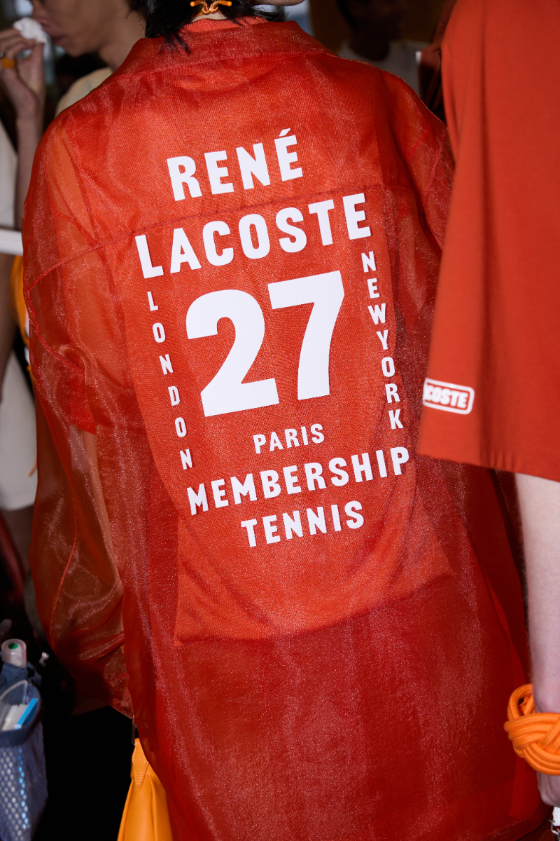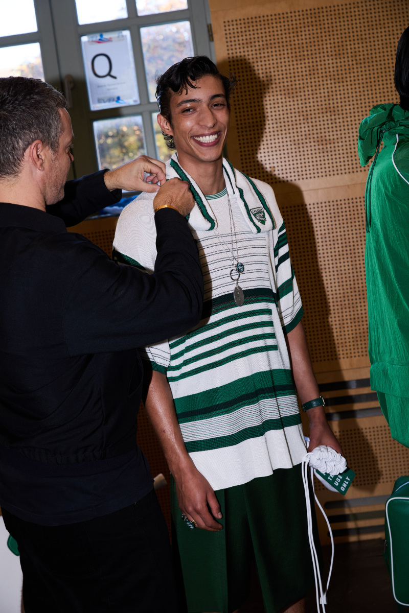 A Lacoste — a comando criativo de Pelagia Kolotouros — transformou a capital francesa num balneário, também conhecido como o santuário que campeões e amadores enfrentam nos seus momentos mais desprotegidos. Nesta nova coleção, o ADN atlético da marca transcende os desafios competitivos e concentra-se no legado e na formação do fundador René Lacoste. Entre uma panóplia de cores garridas e o movimento que advém dos últimos ajustes, a lente de Isabelle Hardy captou a agitação que marcou os bastidores do desfile.