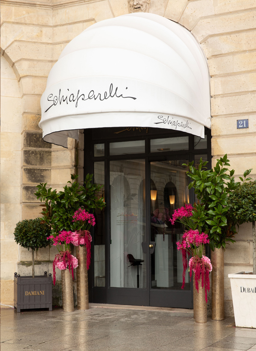 Quando Daniel Roseberry idealizou uma coleção com tantas referências à figura ampulheta, parecia já saber que não seria possível apreciar todos os detalhes disponíveis ao olhar nos minutos em que o desfile decorre. Dessa forma, Isabelle Hardy deslocou-se ao número 21 da Praça Vendôme, a boutique da maison Schiaparelli em Paris, para captar aproximadamente a sua mais recente coleção.