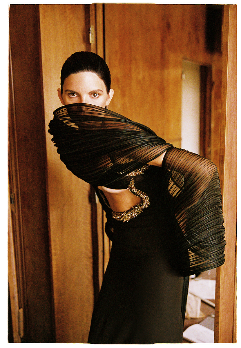 Colete, calções, headpiece e luvas, tudo VALENTINO ALTA-COSTURA.
