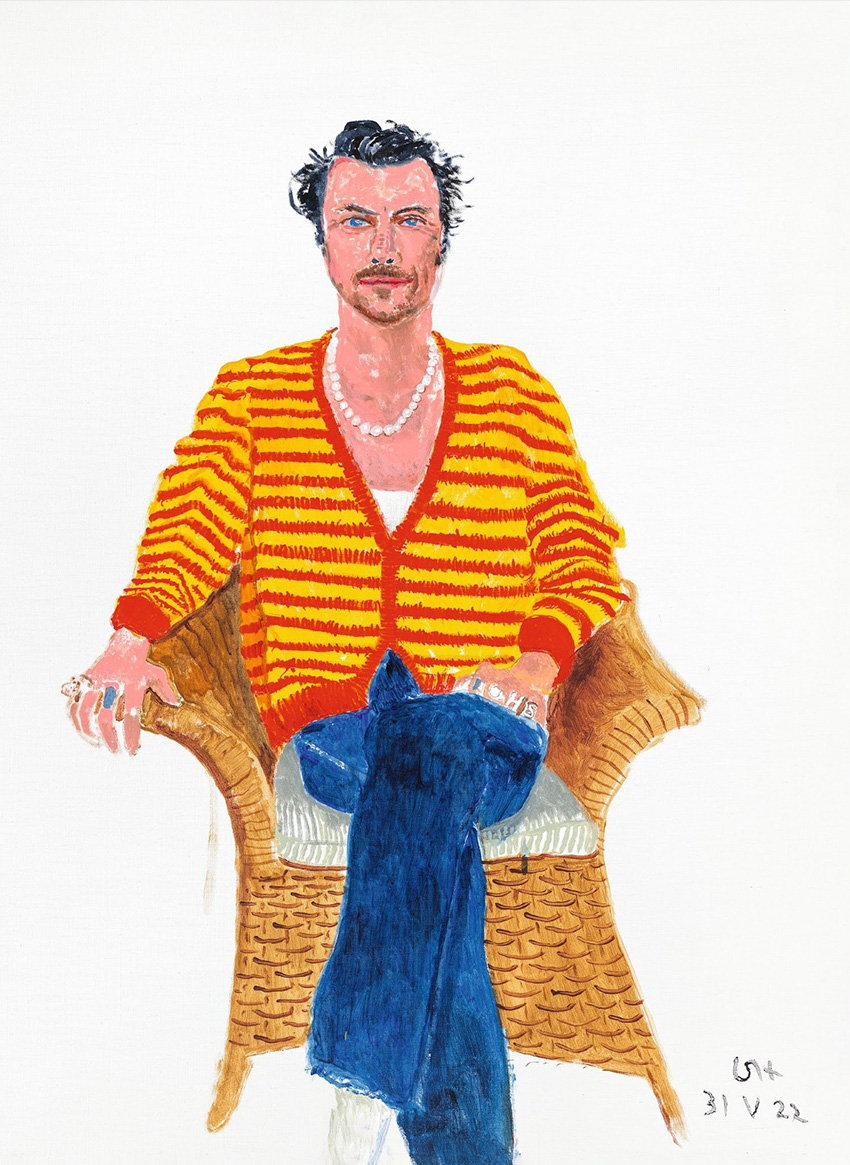 David Hockney, Harry Styles, 31 de maio de 2022. Acrílico sobre tela121,92 x 91,44 cm © David Hockney.