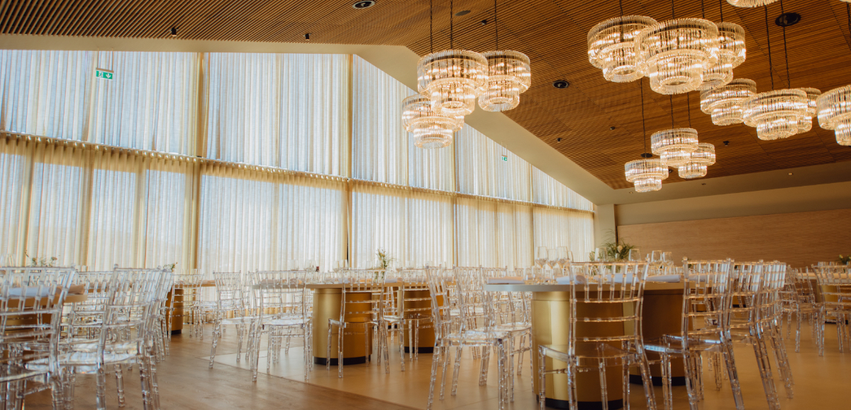 Na Quinta Condes de Valadares, os espaços são amplos e decorados com uma atenção ao detalhe exímia, mas este é apenas o início de um serviço personalizável para cada evento e cliente. Da oferta gastronómica a pormenores como a música e a fotografia, o salão principal acolhe até 400 convidados num ambiente que vive na linha ténue entre o passado e o futuro. A Quinta conta também com a Adega do Conde como segunda sala, onde brilha uma decoração rústica e condições acústicas que tornam qualquer evento verdadeiramente inesquecível.