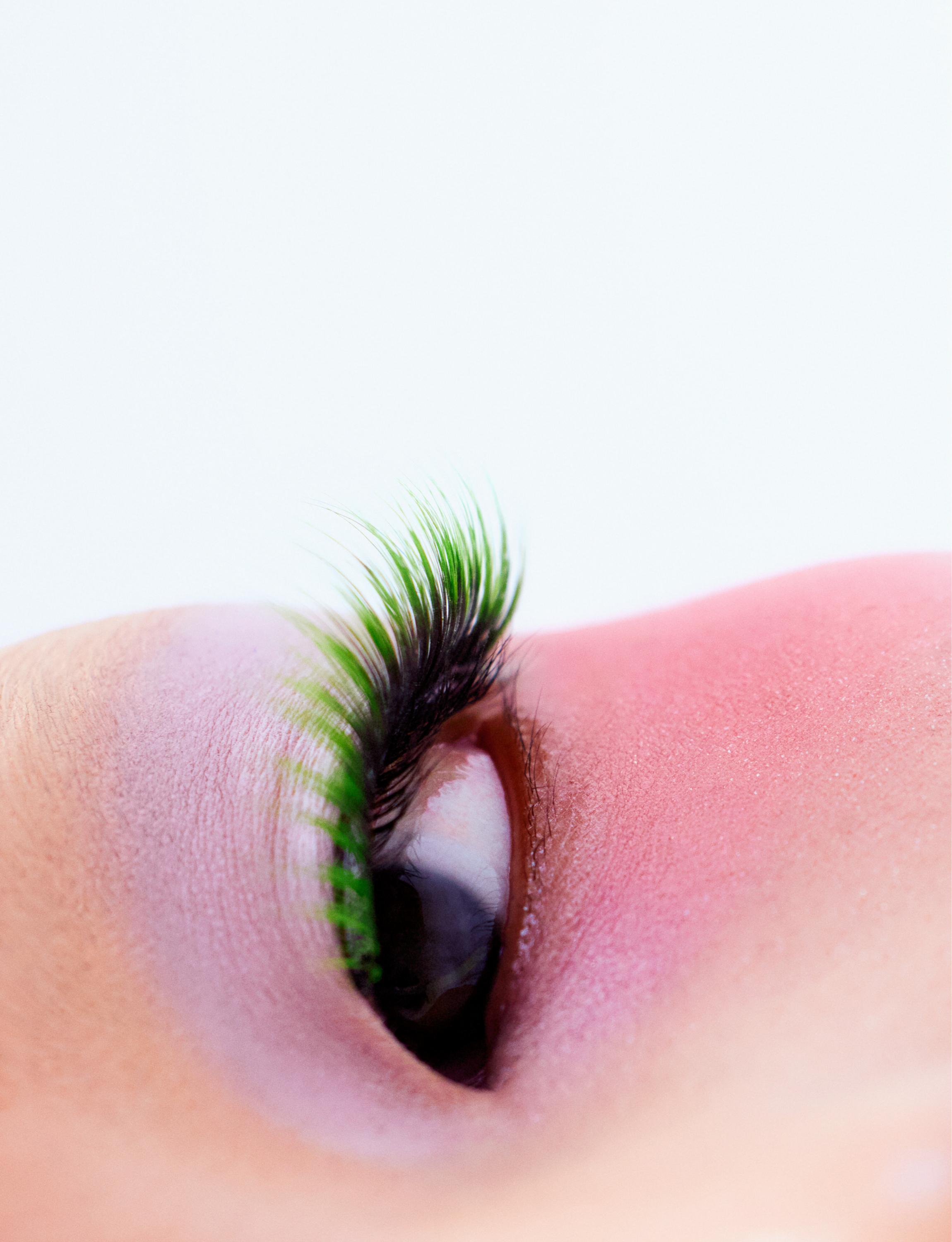 Base Studio Face and Body Foundation, no tom C1, € 49,50, e sombra de olhos, no tom Humblebrag, € 23, MAC. Sombra de olhos Diorshow Mono, no tom 573 Mineral, DIOR. Blush, no tom Deep Throat, € 35, NARS. Pestanas postiças Fabulashes 3D Faux Mink, no tom C15, KARA BEAUTY.
