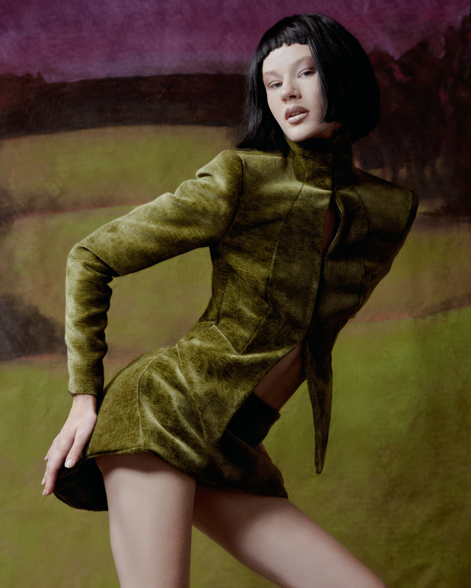 Casaco e chapéu, PERKULMADE. Perneiras, da produção. Sapatos, SOPHIE TINÉ.