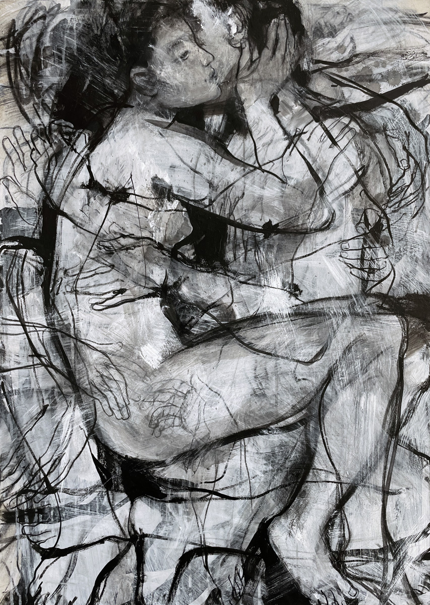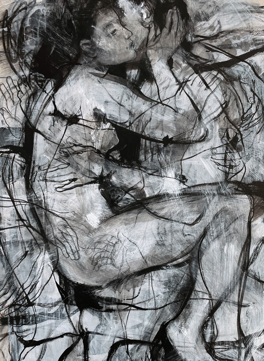 Embrace, 105 x 75 cm, técnica mista sobre tela, 2025.
