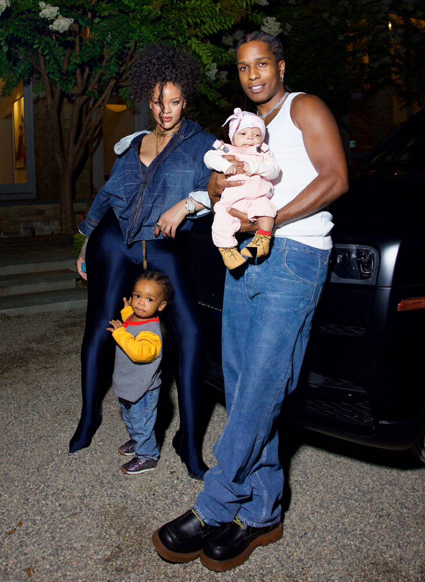 Em vez de uma sessão fotográfica de família tradicional, os dois artistas musicais decidiram fazer uma sessão paparazzi, inspirada em street style: juntos, os quatro encostam-se a um Range Rover à noite. Rihanna usa um par de botas de cano alto azul-marinho e um capuz de ganga, enquanto A$AP se encosta casualmente ao capô do carro com uma camisola de alças e calças de ganga de couro estampadas, Bottega Veneta. Entretanto, RZA está aninhado ao pé da mãe, enquanto Riot Rose, recém-nascida, está nos braços do pai, vestida com um fato cor-de-rosa e pequenas botas Timberland.