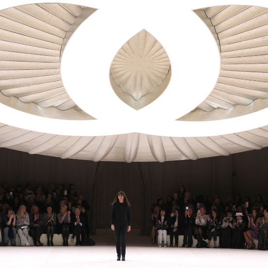 Para abrir o segundo dia do horário lotado, Chanel apresentou a sua primeira coleção sem o input de Virginie Viard. Sem a direção da sua última líder criativa, o atelier focou-se nos seus arquivos como principal fonte de inspiração. Todos os elementos clássicos encontraram-se presentes, do tweed aos botões dourados. Elementos clássicos da Alta-Costura, como penas e bordados foram proeminentes. O Palais Garnier assumiu o papel privilegiado de passerelle e as modelos rodearam a escadaria do recinto sagrado. A localização permeou alguns dos looks, como foi o caso da volumosa capa vestida por Vittoria Ceretti.