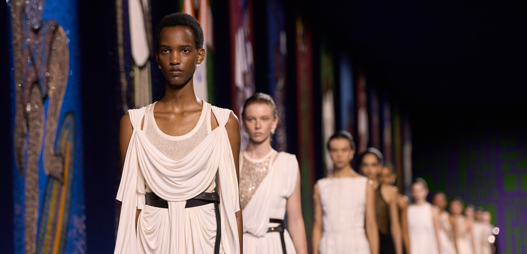 Seguiu-se Christian Dior, onde Maria Grazia Chiuri se apoiou nas Olimpíadas que se aproximam como principal fonte de inspiração. Como forma de homenagear os atletas que preservam a integridade do evento, a designer italiana apresentou 61 looks que reinterpretam códigos clássicos do mundo do desporto através da lente da Alta-Costura. Através da visão de Chiuri, o jersey é elevado ao seu estatuto mais alto, o ouro e prata são derretidos em mesh metálica que dança no corpo das modelos à medida que estas desfilam pela passerelle. Claro que a designer não se limita a apresentar coleções - os seus desfiles são sempre pensados em contextos feministas. Para esta estação, Chiuri homenageou Faith Ringgold, uma artista feminista americana. As obras de Ringgold adornaram o espaço do desfile, montado no jardim da casa Museu de Rodin. Nas paredes azulejos brilhantes desenhavam desportistas e, na passerelle modelos com fatos de banho e vestidos igualmente cintilantes homenageavam-nos.
