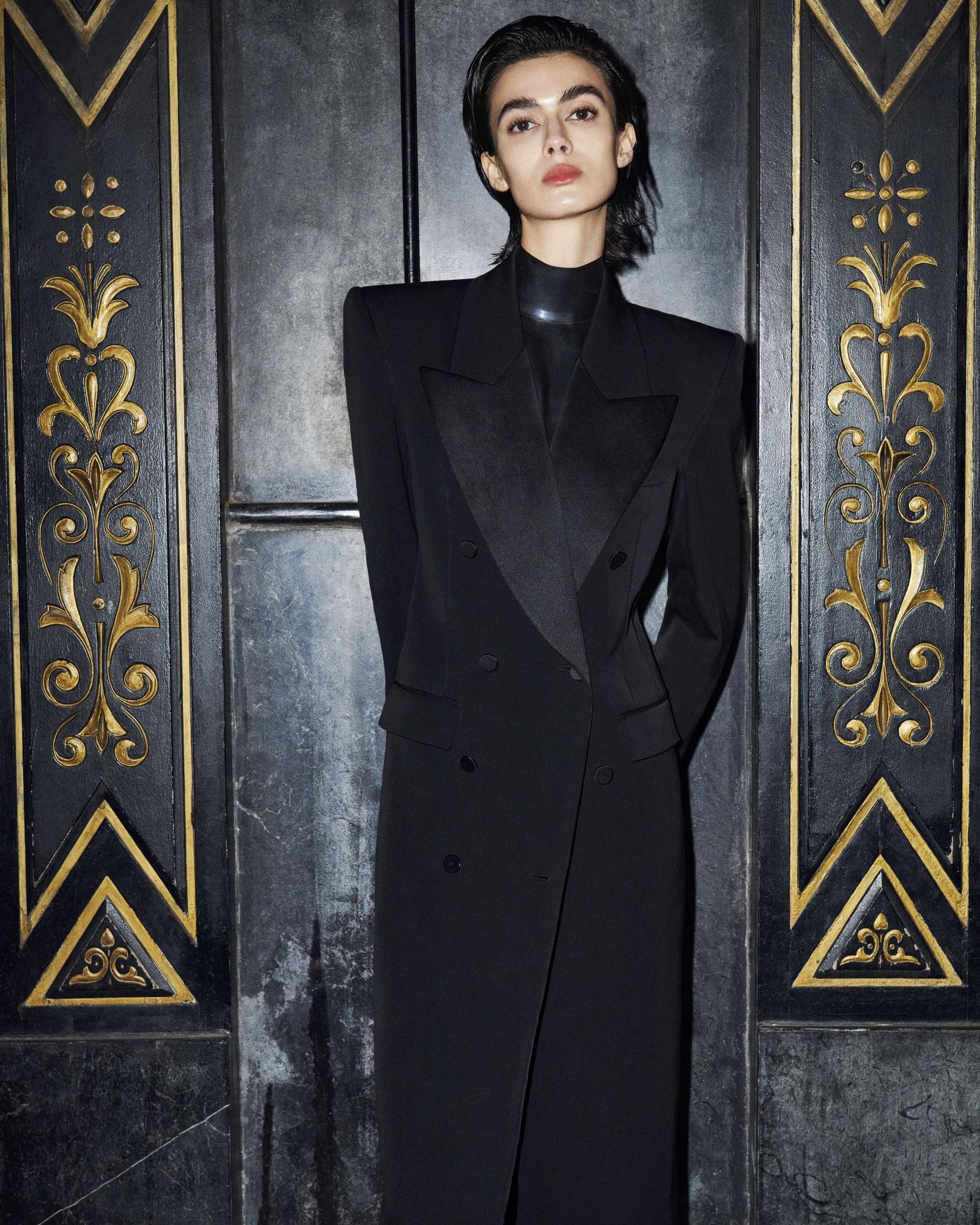 Casaco, SAINT LAURENT BY ANTHONY VACCARELLO. Top, ATSUKO KUDO.
