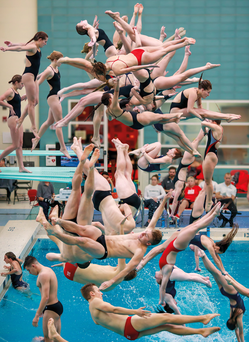 The pictures depict people doing sports, but instead of the number of people we are used to see, there are dozens more. What to you intend to show with this, is it somehow a critic to modern society? As I said in my last answer, the initial basic urge was compositional and expressive, and adding more figures achieved this. I was also aware of the role stop-motion photos have played in the history of photography--Muybridge and Edgerton, in particular--and I wanted to be sure that my photos weren’t cliched versions of theirs. Instead of presenting a rational image--a runner plants a pole, the pole bends, the figure ascends, hovers over the pole, and now free of tension, falls and sinks into the puffy mat--my images are a chaos of poles and limbs and are more akin to the experience of participating in sports than in watching them. I like to play various sports--tennis, volleyball, basketball in the past, and pickleball these days--and the feeling while I’m in it is one of just barely staving off chaos, all the action unfolding in a rapid mess while I struggle to impose order by making the ball go here or there. I think this feeling explains on a basic level what I’m trying to do. And my pictures favor play over competition. And maybe by extension, I’m criticizing not only the competitive, rule-bound nature of sports by making a mess of it, and by much further extension, equating competition with capitalism and making fun of it.. But it’s hard for me to say that it’s my intent, only that an anarchic spirit is mixed in there somewhere.