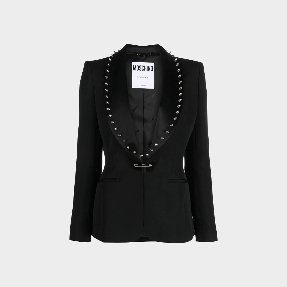 Blazer em lã e poliéster, € 1.650, Moschino, em farfetch.com.