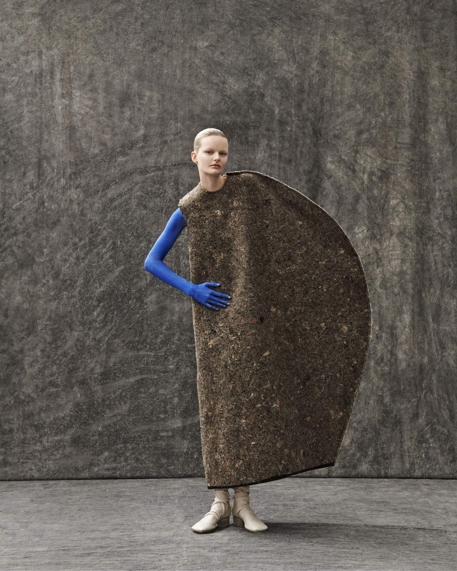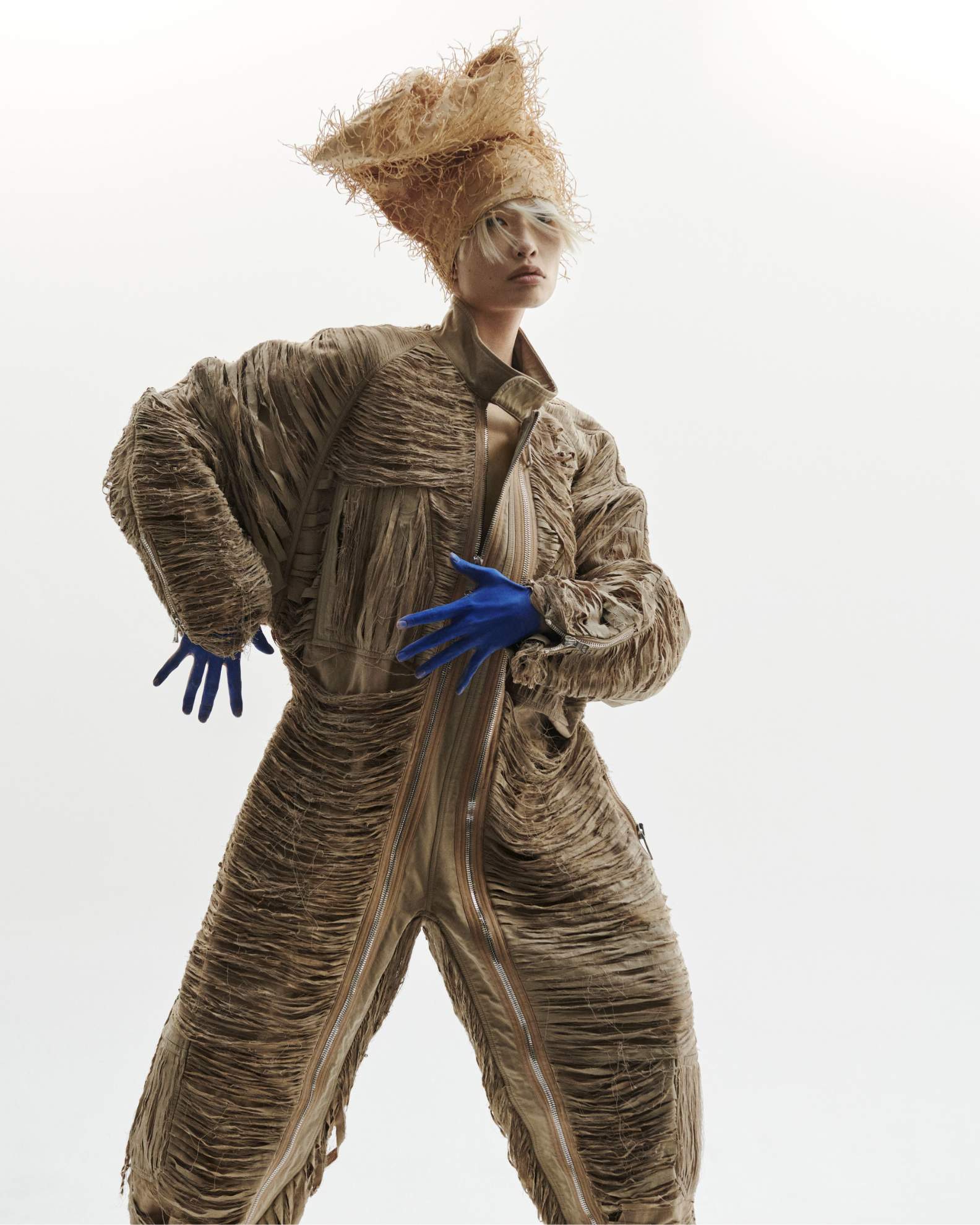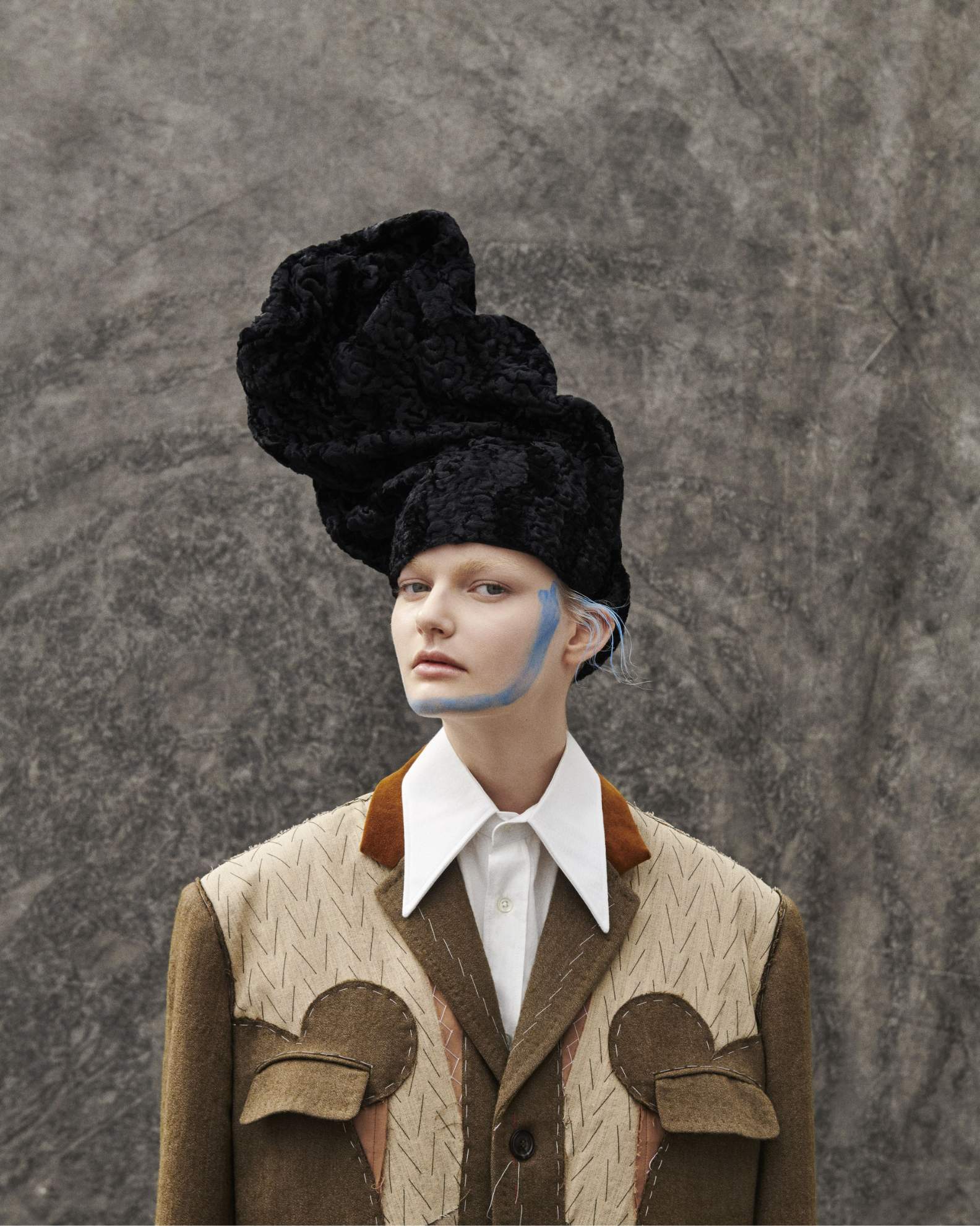Bo: casaco e camisa, MAISON MARGIELA. Headpiece, NICCOLÒ PASQUALETTI.