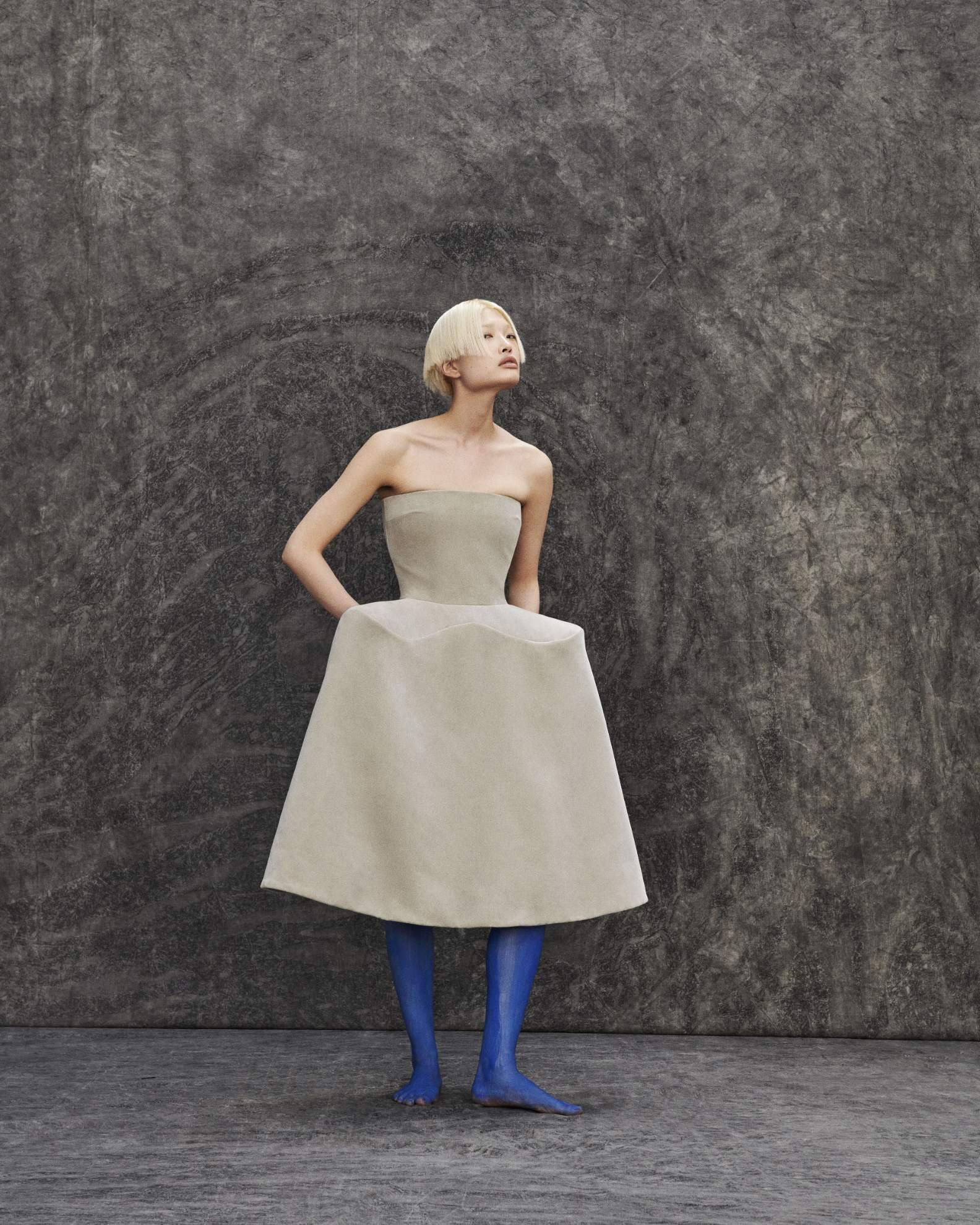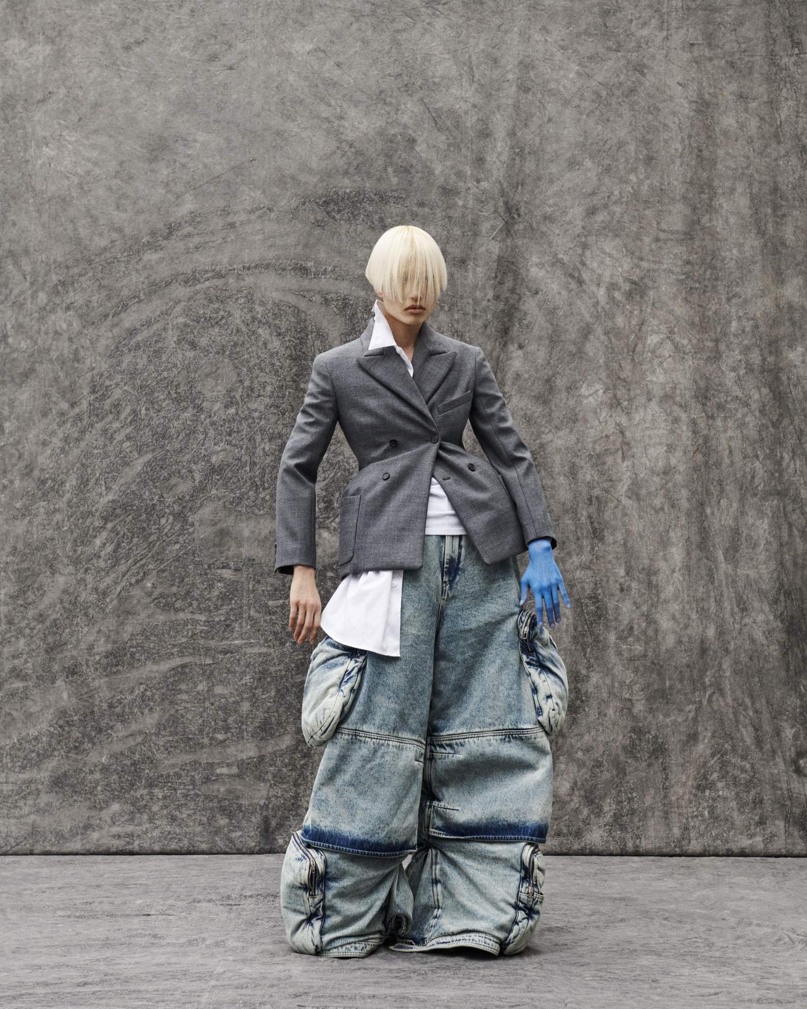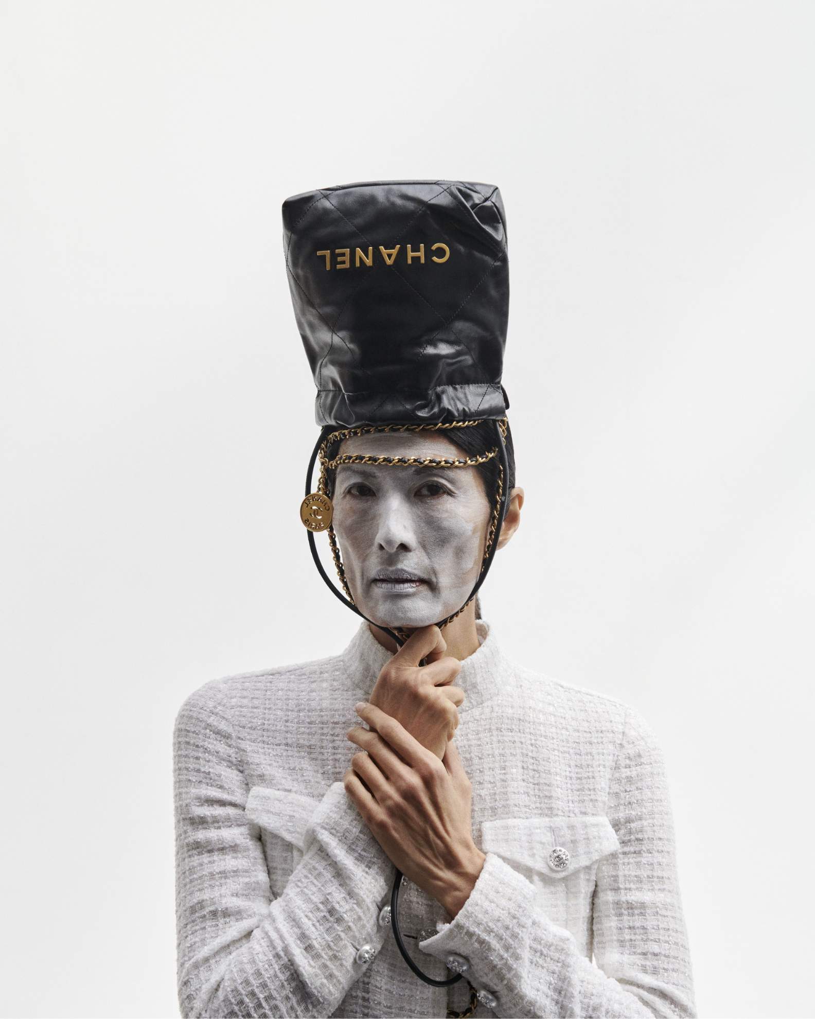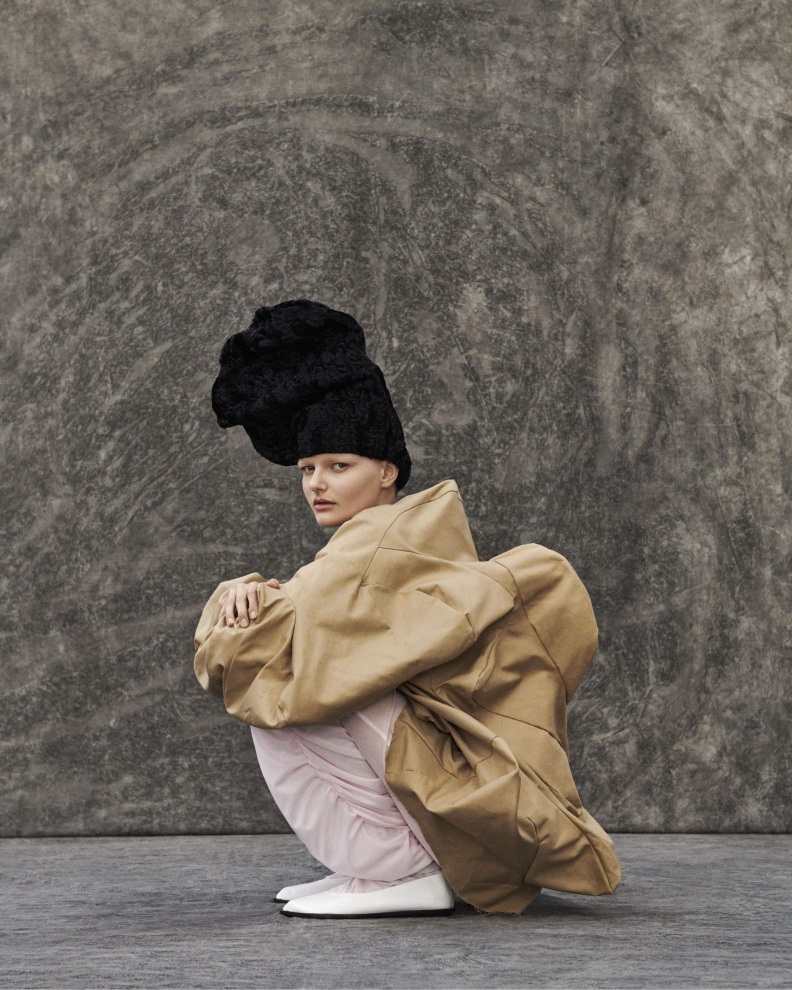 Bo: casaco e camisa, MAISON MARGIELA. Headpiece, NICCOLÒ PASQUALETTI.