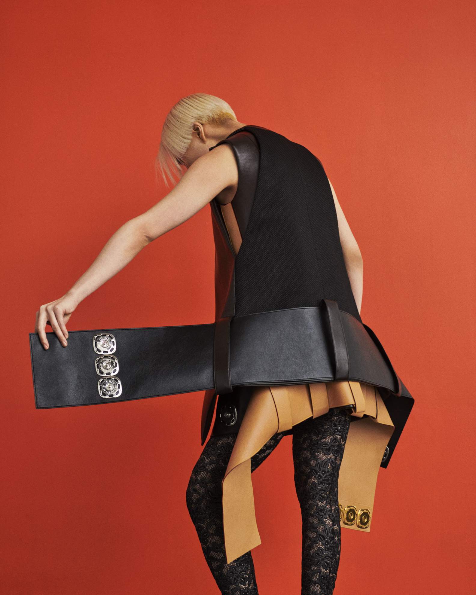 Steph: colete e collants, LOUIS VUITTON.