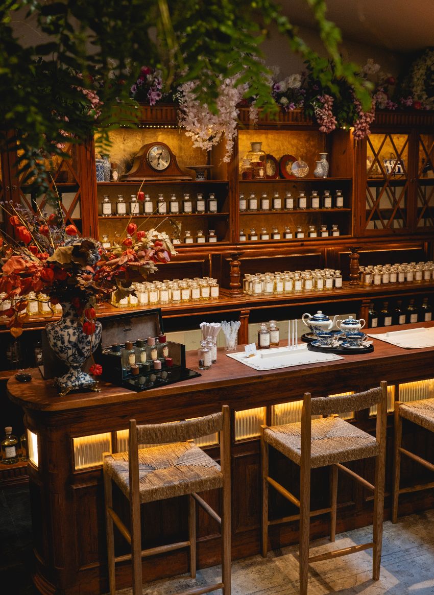 Escondido num recanto silencioso no meio do caos da capital, o The Bespoke Garden nasce do espaço que, outrora, se assumiu como um laboratório do século XIX. Aqui, encontramos um refúgio secreto que nos convida à descoberta de memórias e sentimentos através de diferentes aromas. Neste espaço, é possível criar uma fragrância única, pensada à medida de cada especificidade que nos molda.