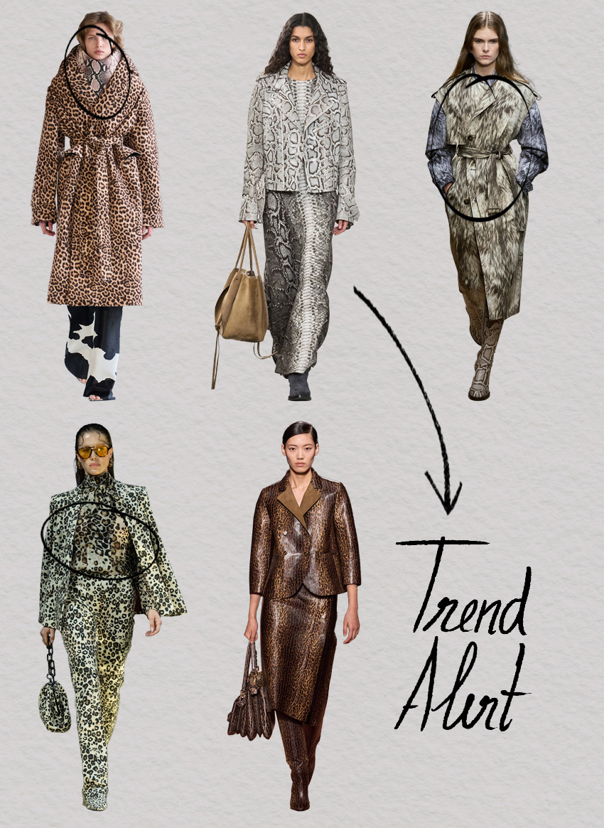Nas passerelles ao redor do mundo, os principais nomes da Moda sugerem abordagens distintas, mas igualmente ousadas. Duran Lantink propõe combinar diferentes padrões para um visual que prima pelo maximalismo, enquanto Fendi ou Marc Cain optam por renovar a identidade do leopard print. Já as propostas de Gabriela Hearst e Tod's inspiram-nos a apostar em padrões inusitados e a explorar as diferentes hierarquias da vida animal.