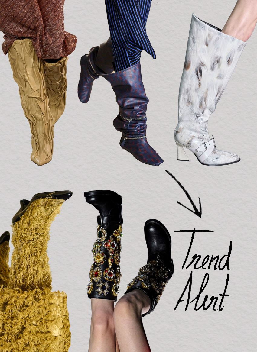 Diretamente das Semanas de Moda ao redor do mundo, chega-nos uma diversidade de opções que prometem fazer jus a esta tendência. Destacam-se modelos oversize e com cano alto – como mostra Kiko Kostadinov – mas também exemplares que brincam com padrões e texturas – como os apresentados por Giuseppe Di Morabito e Andreas Kronthaler para a Vivienne Westwood.