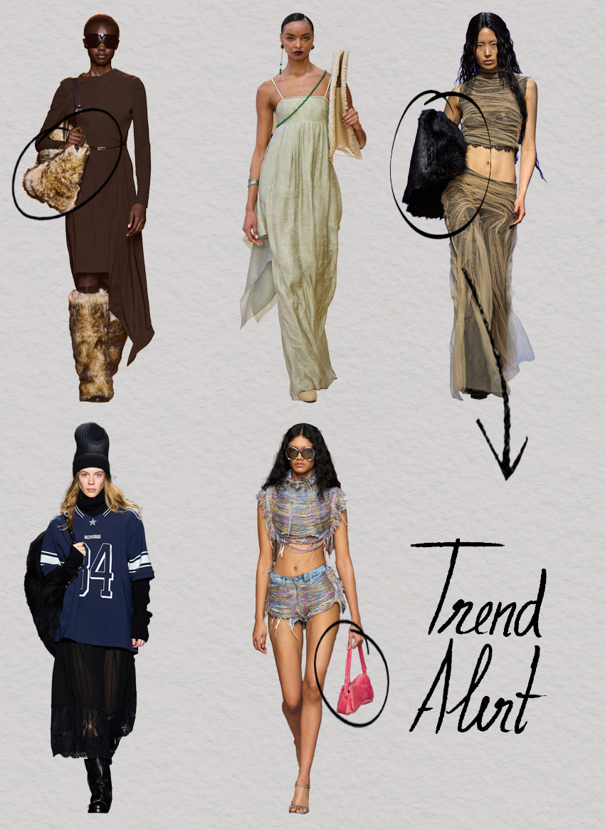 Das propostas mini às opções mais oversized, as carteiras em pelo surgem numa multiplicidade de silhuetas. As derradeiras inspirações chegam-nos diretamente das Semanas da Moda ao redor do mundo, nomeadamente das coleções de nomes como Sarawong, Elie Saab ou Diesel. Abaixo, trazemos sugestões imperdíveis para adicionar à rotação de carteiras.