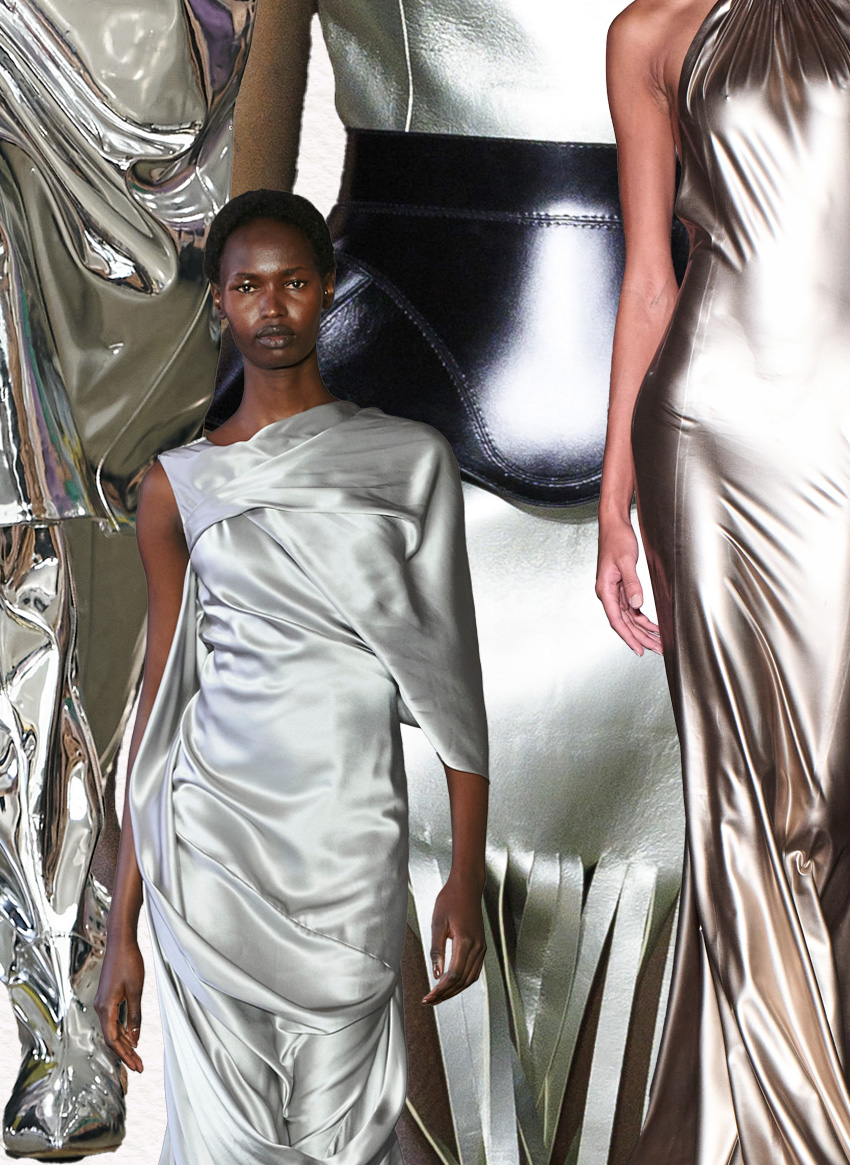 Alexander McQueen, Aknvas, Coperni ou Diesel são alguns dos nomes que apresentam as suas derradeiras propostas metálicas para a estação, seja em prateados cintilantes, dourados sóbrios, com franjas ou num metálico tão vivo que parece derreter-se sobre o corpo, fruto das temperaturas escaldantes. Das sandálias aos tops perfeitos para transitar do escritório para o bar mais badalado da cidade, há sugestões imperdíveis.