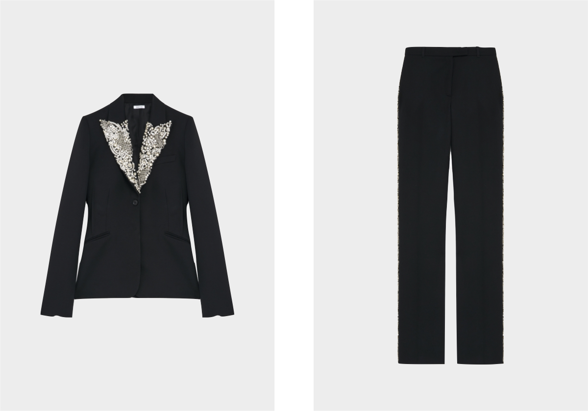 Blazer e calças em lã, € 3.600 e € 2.990, McQueen.