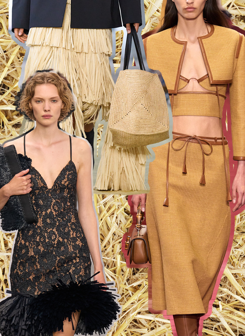 Das tradicionais carteiras a propostas mais irreverentes como calçado ou peças de vestuário, a ráfia une a preciosidade do trabalho artesanal a Pantones que honram as tonalidades da natureza. Nas passerelles que ditam as tendências da Moda, Michael Kors provou que a verdadeira magia deste material está nos detalhes e incorporou a ráfia em vestidos delicados; já Nanushka optou pela estética do maximalismo nas suas silhuetas. No que a acessórios diz respeito, Ermanno Scervino e Hermès apresentaram as suas propostas para os eternos cestos de palha, enquanto Roberto Cavalli aventurou-se no mundo do calçado. Mais do que um símbolo de elegância e simplicidade, a ráfia é homenagem à energia eclética do verão – e trazemos propostas imperdíveis para ver abaixo.