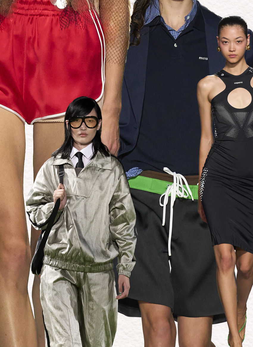 Os designers estão a esbater as linhas entre a roupa desportiva e a roupa do dia a dia, criando peças que combinam a forma com a função na medida certa. Miu Miu, Coperni, Dries Van Noten ou Vaquera são alguns dos nomes que trazem para o centro das atenções as saias de ténis, as riscas, a lycra e os polos. Felizmente, os ténis já não servem só para correr e as sweatpants podem (surpreendentemente) ser aceitáveis fora de casa. Haverá tendência mais conveniente?