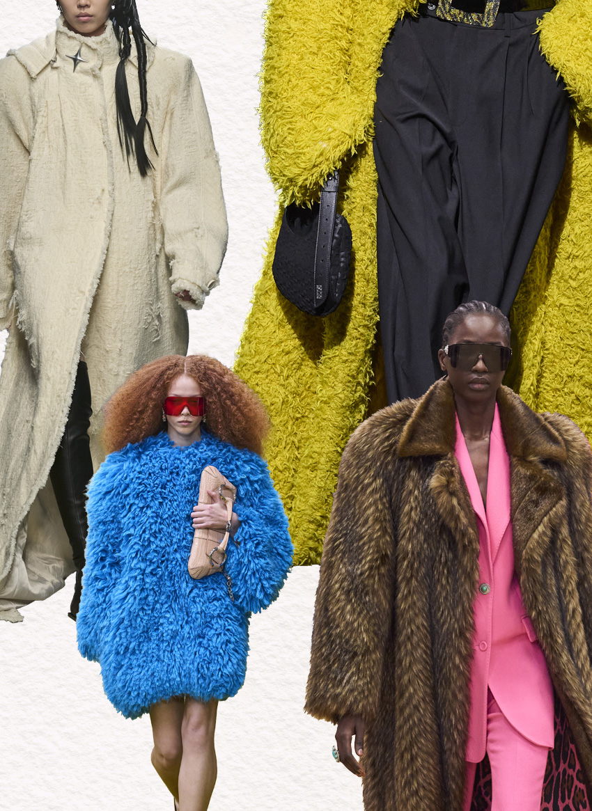 Em sherling, € 9.500, Chloé; Teddy Bear em pelo, € 2.209, Max Mara.