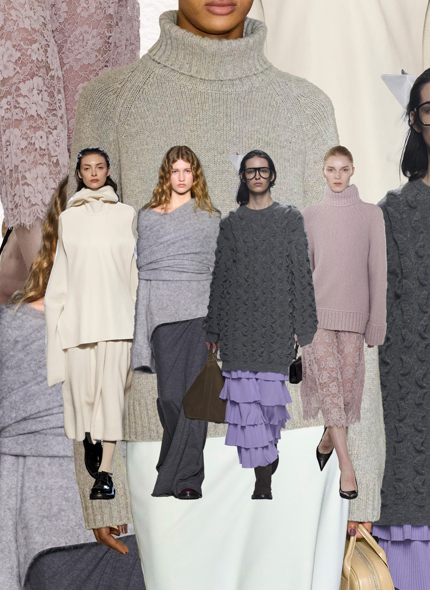 Num verdadeiro caleidoscópio de padrões e texturas, nesta estação, as camisolas de malha e as saias compridas ganham novas dimensões e assumem o protagonismo.
