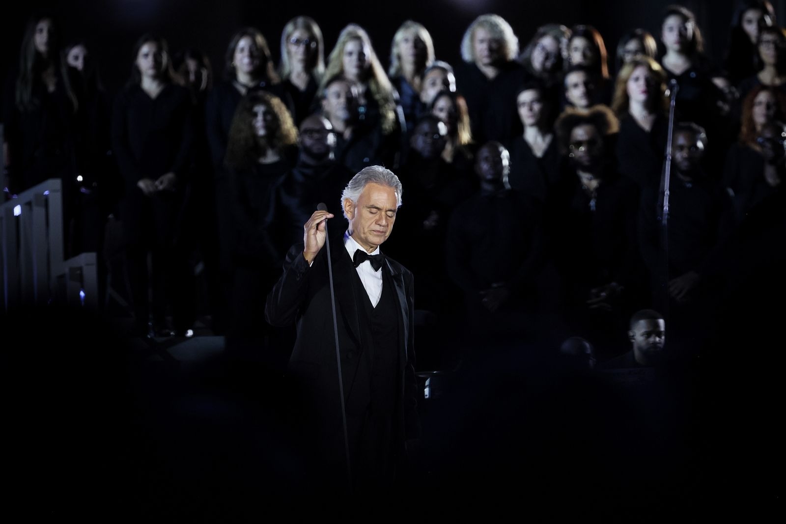 Andrea Bocelli no palco durante o evento Grace For The World, na Praça de São Pedro, a 13 de setembro de 2025, no Vaticano.