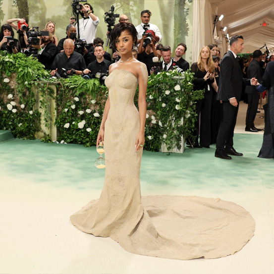 O código de vestuário de 2024 teve como tema The Garden of Time, inspirado num conto de JG Ballard, que se passa numa vila edénica rodeada de flores cristalinas com folhas translúcidas. Os convidados aderiram ao tema com florais e silhuetas de ampulheta, looks de arquivo raros e vestidos de baile imponentes. Alguns destaques a relembrar incluem: Kim Kardashian num espartilho de Alta-Costura Maison Margeila, Zendaya no look 8 da primeira coleção de alta-costura Givenchy de John Galliano em 1996 e Greta Lee em renda Loewe esculpida.