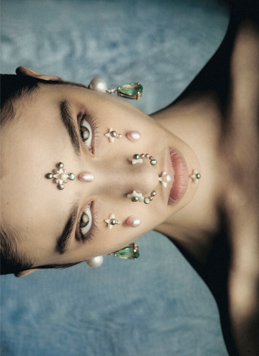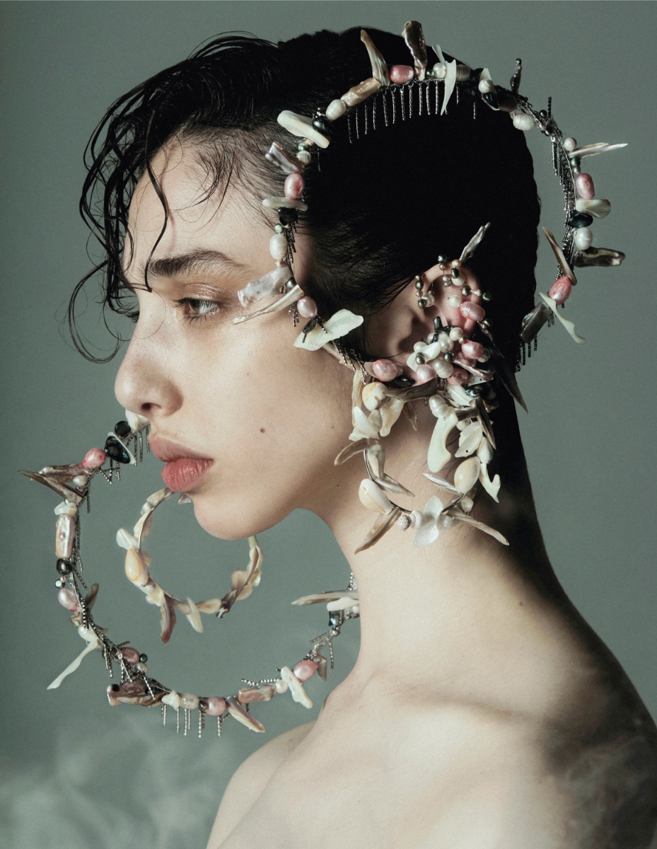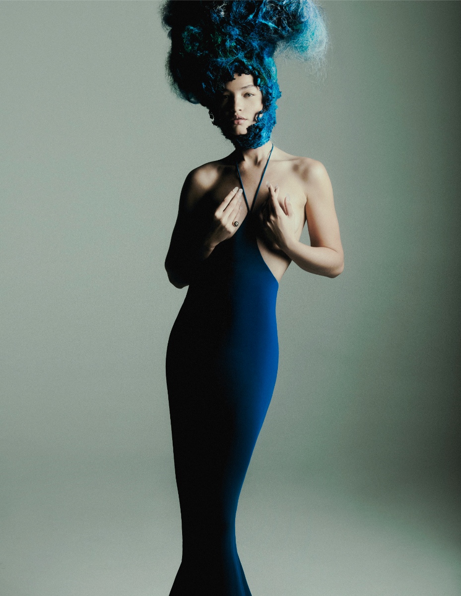 O mar serve de inspiração para este editorial de beleza que vai ao fundo do oceano para ir buscar referências que inspiram e respiram em terra firme. Os mil tons azuis, do mais negro submerso à clareza cintilante da superfície, as texturas aquo- sas e os detalhes como pérolas e conchas fazem desta protagonista uma sereia que se move entre o solo e a água, o belo e o desconhecido, o mergulho e o regresso à tona. Nesta paixão pelo azul salgado que nos apela, faz-se da maquilhagem e dos cabelos uma ode a este amor de água fresca.