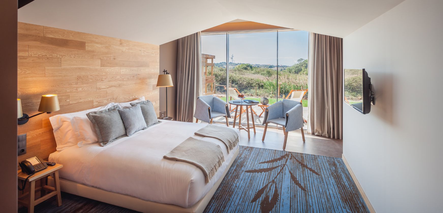 Aqui, cada detalhe foi pensado para proporcionar uma experiência de conforto contemporâneo que nunca se afasta da tradição local. A oferta de seis villas temáticas pet-friendly, 17 quartos duplos e duas suites com linhas depuradas e materiais que dialogam com tudo o que os envolve, confere ao espaço um ambiente de serenidade. O design de interiores junta sobriedade e sofisticação, evocando uma sensação imediata de acolhimento, ideal para quem procura desligar-se da rotina e abraçar o tempo mais devagar.