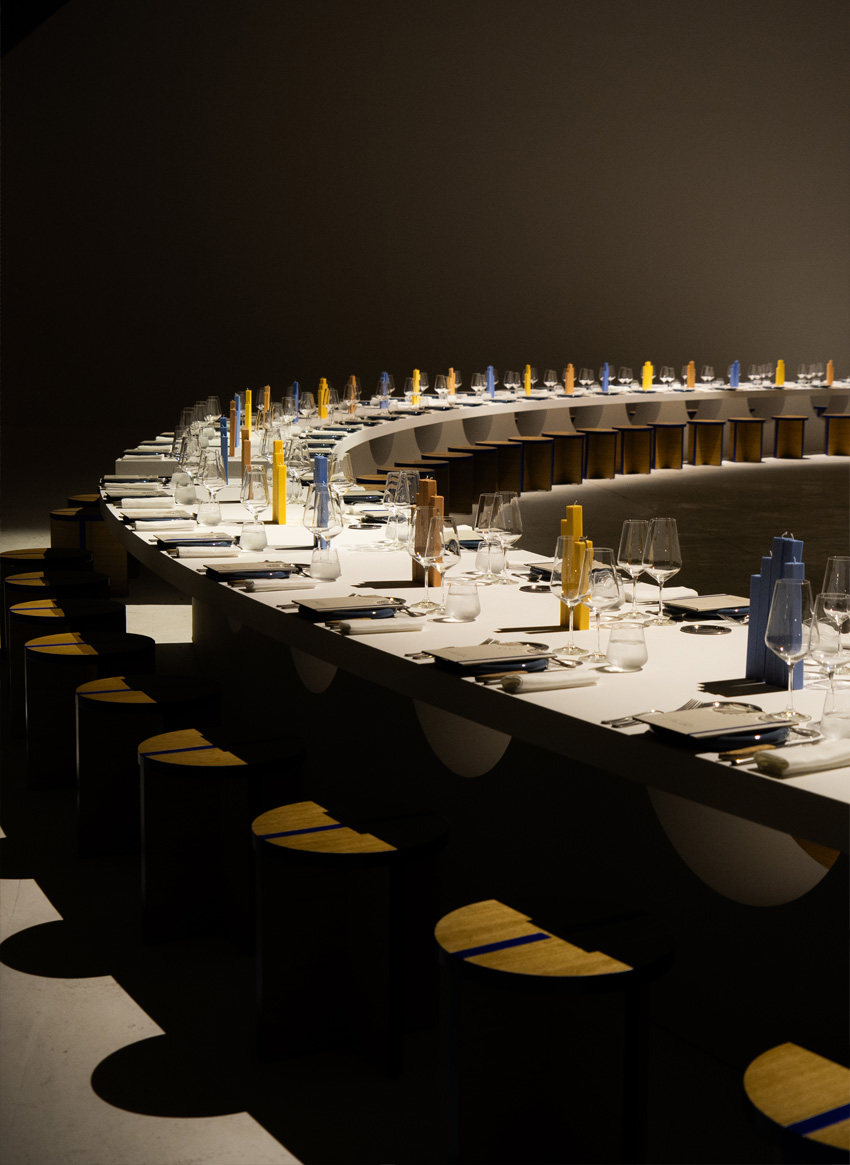 Uma estrutura central com mais de 10 metros de altura dividia o espaço em dois semicículos, formando um elo perfeito visto de cima. Este design criou o cenário para uma experiência apresentada em três atos: cocktail, banquete e festa, onde cada momento capturou uma essência diferente da celebração. O culminar deu-se no ato final, o Set 3: Party, onde a noite ganhou vida com uma fusão eletrizante de música eletrónica e ritmos folclóricos espanhóis.