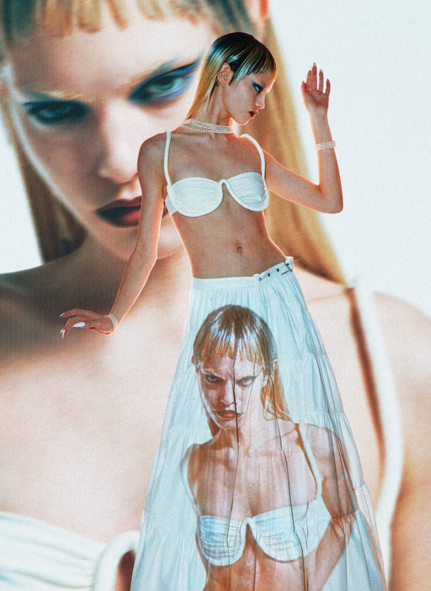 Lise: soutien, ISA BOULDER. Saia, DIOR. Colares e pulseiras, tudo COPIN.